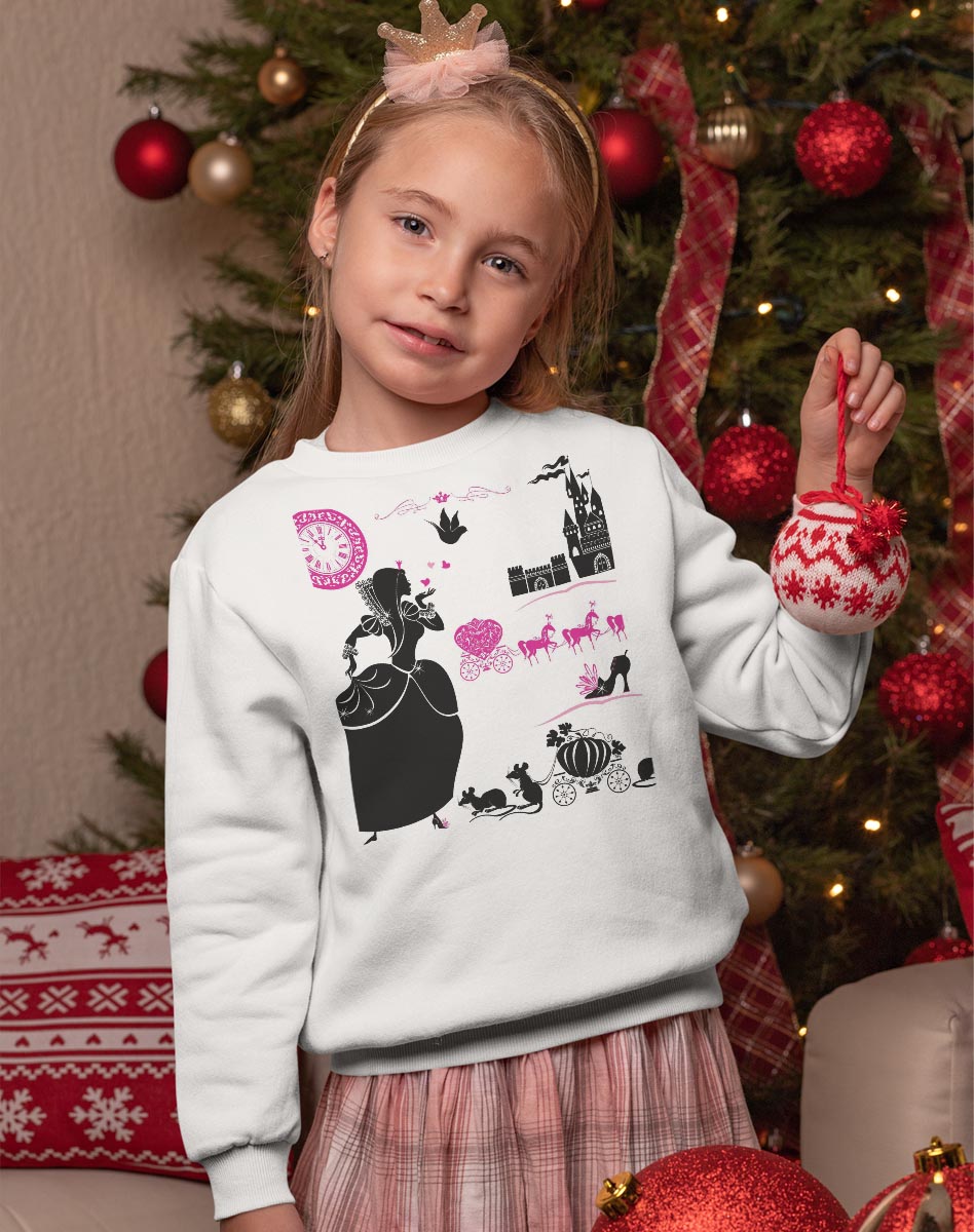 トレーナー キッズ 子供 長袖 ホワイト グレー ブラック デザイン 110 130 150 sweatshirt trainer 白 黒 灰色 裏パイル スウェット スエット 011349 プリンセス 時計 ピンク