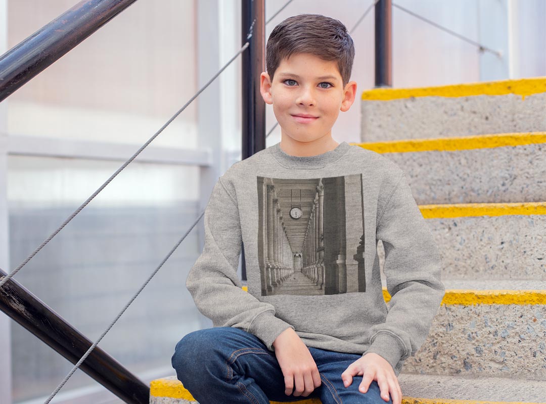 トレーナー キッズ 子供 長袖 ホワイト グレー ブラック デザイン 110 130 150 sweatshirt trainer 白 黒 灰色 裏パイル スウェット スエット 007546 写真 モノクロ 時計 建物