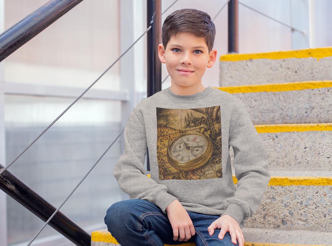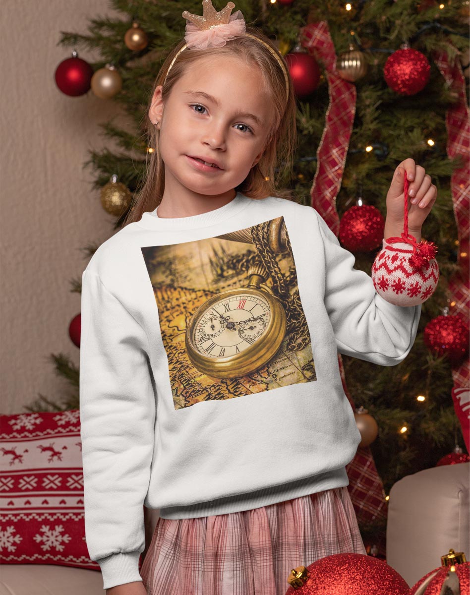 トレーナー キッズ 子供 長袖 ホワイト グレー ブラック デザイン 110 130 150 sweatshirt trainer 白 黒 灰色 裏パイル スウェット スエット 002687 時計 レトロ 写真